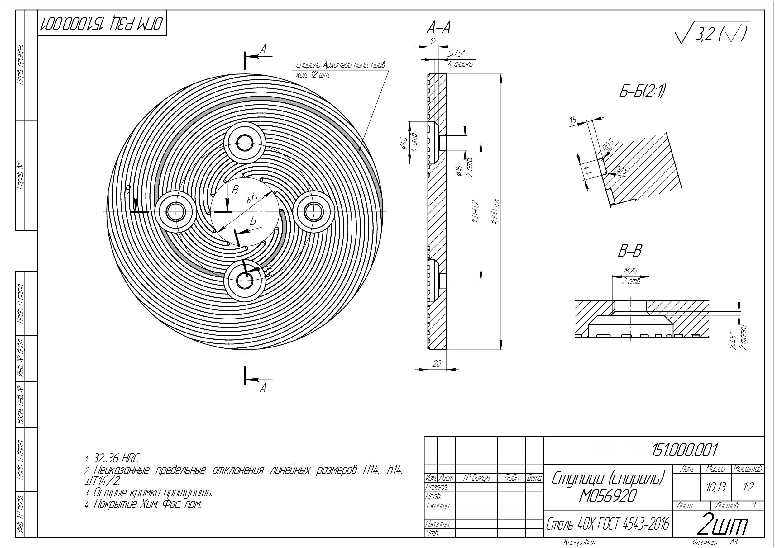 изготовление детали (Ступица (спираль)) по чертежу на ЧПУ |